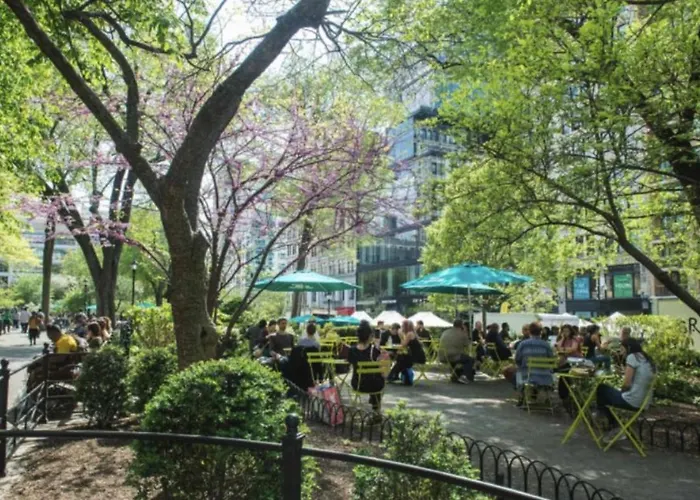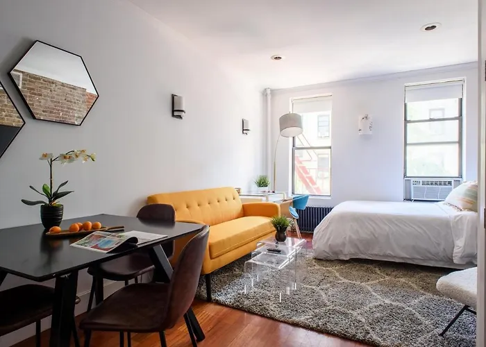 De boutique woning ligt in de Manhattan wijk van New York en dicht bij de metro, het is namelijk circa 5 minuten lopen naar 47th-50th Streets-Rockefeller Center metrostation. Metrostation Bowery is op 4 km hier vandaan. U kunt naar Dunkin' gaan, dat is een plek 100 meter verderop waar de Amerikaanse keuken wordt geserveerd. Slechts een paar stappen verderop is er Duffy Square. 6th Avenue & West 45th Street busstation is op 400 meter afstand.